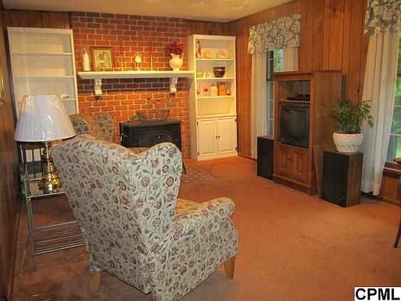 Beautiful, secluded setting bordering State Game Lands! Spacious 2-3 bdrm, 2 bath ranch offers plenty of versatility. Living room with wood stove & built-in bookcases, large eat-in kitchen with access to rear patio & hot tub, beautiful addition with wood paneling, vaulted ceiling & bay window that would make a wonderful bdrm with an adjoining room currently used as an office. Updated baths, main level laundry, shed, 2-car garage