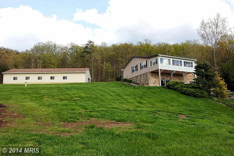 BELOW APPRAISAL! TWO 5+ acre lots w/ NO HOA! Huge detached garage/workshop w/bathroom and office (2x6 construction) and room for 7+cars(perfect for RV)! Privacy, amazing views, metal roof, oak hw floors w/ walnut pegs, sunroom, stone foundation, lower rec room and family room(with woodstove)both w/high ceilings and sliders to lower patio. Skylight, underground utilities, newer high efficiency hvac system!