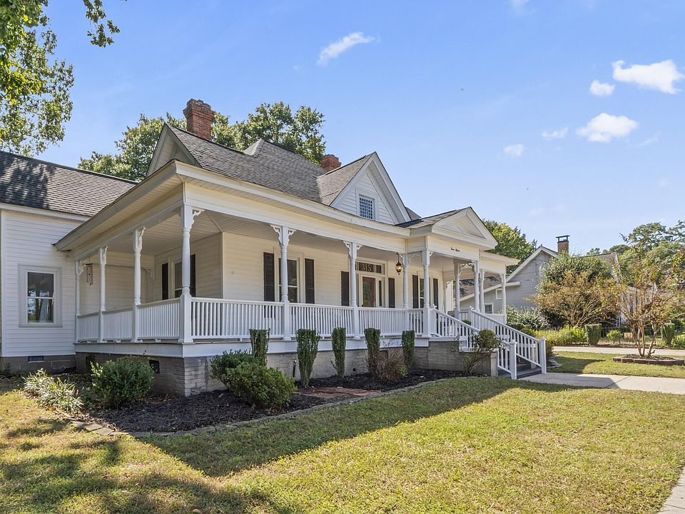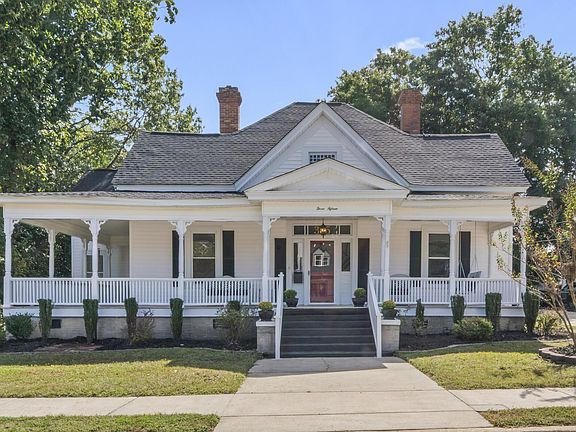 One of a kind in Downtown Clayton! The wrap around porch welcomes you to this amazing home in the Historic District. Only 2 blocks from Main Street, walk to all the activities of vibrant downtown Clayton! This home, built in 1900, got a thoughtful addition in 2012 adding a Primary suite with bath and walk in closet, a secondary bedroom, plus a side entry mudroom with laundry. Since then, many updates have been completed - providing modern conveniences while maintaining the original charm. This home features 3 bedrooms, 3 full bathrooms (all completely renovated,) a kitchen renovated in 2016 plus a beautiful foyer, dining room, living room, office and den. The backyard features a stone patio with motorized awning, a firepit area, and shed. There are also wonderful accessibility features including a wheelchair ramp to the side entry, a zero entry shower in the primary bath and level flooring, with limited carpet in the home. Freshly painted throughout, new roof in 2023, encapsulated crawl space and much more! The seller is also providing a Home Warranty. Houses of this size with this many updates are hard to find so close to Downtown Clayton. Don't miss this opportunity!