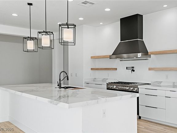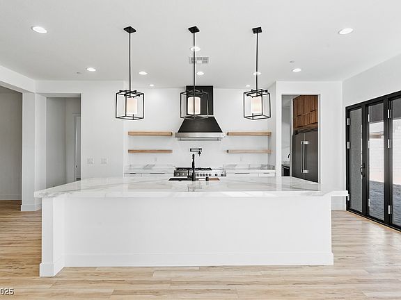 Ask how we can help you to reduce your mortgage payment! Contour Persona is an enclave of Executive-Style homes nestled in the Foothills of Henderson. Neighbors include Heritage Park, the Aquatic Center, the Senior Facility, & the nearby amenities of the Water Street District. This single-story new home offers3857sf, 4 ensuite bedrooms w/ walk-in closets, 4-car garage parking w/epoxy finish, RV parking + hook-ups, 10' ceilings, soft-close cabinets, quartz slab counters, tile flooring finishes, matte black fixtures, teak shower benches, free-standing tub, wet bar, a linear fireplace, coffee station, a covered patio w/ pass-through to a Prep Kitchen, & a pool-sized yard. Kitchen includes walk-in Pantry, Bertazzoni Master Series stainless appliances including 48" range/oven with hood, refrigerator + freezer columns, 2 dishwashers, microwave, & warming oven. Primary Bedroom has 2 walk-in closets, 3-way wardrobe mirror, wet bar, and a spa-like bathroom.