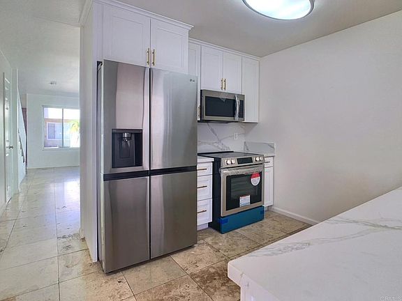 Experience the best of El Cajon in this stunning 2-bedroom, 1.5-bath Condo, perfectly positioned in the heart of the city. Gated community and 1 Parking space #126. With 1,104 sqft of sleek living space, this move-in-ready two story home recently remodeled with modern upgrades and stylish finishes throughout. Enjoy seamless transitions between rooms with tile flooring on the first floor and new vinyl flooring on the stairs and second level. The kitchen shines includes sleek stainless steel appliances, while the bathrooms feature chic, contemporary designs. Relax in a peaceful, well-maintained community, just minutes from groceries, dining, gas stations, church, and top-rated schools. HOA includes trash, water, pool, and maintenance grounds!