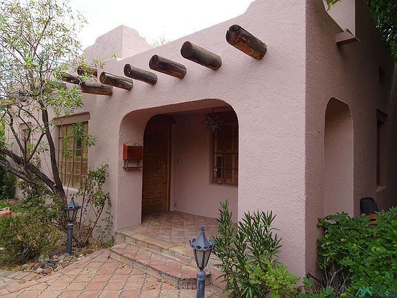 In town, Santa Fe Pueblo style 1687 sq ft home and 754 sq ft casita. Main home is 3 bedrooms, 2 baths, living room, dining room, kitchen with seating area plus counter seating. Old Mexico tile, decorative wood cabinetry, pantry, large sky light in center and open to a formal dining room. has small finished basement with shelving, windows and furnace/hot water heater room. You'll find cedar lined closets, built in cabinetry in one bedroom w/laundry with laundry in closet. Large Main bedroom w/french doors leading to rear yard and covered Patio. Fabulous tiled bath with soaking jet tub and a shower room. Private rear yard with Casita, kitchen, bath, utility room, extra open space and a Kiva fireplace. Just a few blocks to Downtown Deming, NM and access to the I-10 to Las Cruces, Lordsburg and Airport at El Paso, Texas. Silver City to the north and Columbus, NM to the south. Better drop everything and see this first.