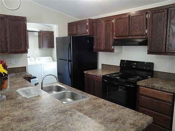A lovely home just across the street from the lake situated on one acre. Plenty of room for gardening and walking distance to park with a pier, covered BQ area, lot of room for games and swimming. This home has great decks front and back that makes it easy for walkers and wheel chairs and gives a scenic view of the lake. Large bedroom with vaulted ceilings, walk in closet and open bath vanity with a large tub. On opposite end of house are two bedrooms with hall bath. Kitchen and living room are open together with a center counter with stools to have your meals at. Separate utility room with washer and dryer. All electric home with stove and refrigerator include. Storage shed in back yard with several sheds. This property is on community water and has a septic system. This is country living with lots of wildlife to enjoy. Local volunteer fire station, dirt airstrip for private planes and general store near by. Owners bedroom and living area have vaulted ceilings, also a antenna on the roof for internet with Sky Tech. Home is a Solitaire 372 Manufactured home 16 x 72. New septic system installed with all the pictures and permits.