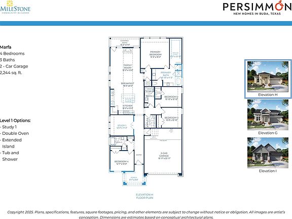 A new chapter is taking shape in Buda. Persimmon is a one-of-a-kind master-planned community rooted in the natural beauty of the Texas Hill Country. Spanning more than 775 acres, this thoughtfully designed neighborhood is built for connection, convenience, and room to grow. From trails and green spaces to shaded gathering spots and modern amenities, Persimmon brings families together in a setting that feels close to everything yet far from ordinary. Whether you are planting roots or simply ready for more space and fresh air, Persimmon offers the charm of a small town with the everyday access of South Austin. Welcome to this beautifully designed single-story home offering 2,249 square feet of thoughtfully crafted living space. With 4 bedrooms, 3 full bathrooms, and a dedicated study, the layout provides both comfort and flexibility for families or those working from home. The chef’s kitchen features an oversized island, premium 3 cm quartz countertops, 63-inch cabinetry, sleek black hardware, natural gas double ovens, and modern lighting. An open-concept design blends living and dining spaces seamlessly, while a covered back patio invites effortless indoor-outdoor living. The spacious two-car garage completes this home’s balance of elegance and practicality. Located just minutes from downtown Buda, this home offers small-town charm paired with everyday convenience. Residents enjoy access to beautifully designed community amenities including pools, an indoor gym, pickleball courts, tree-lined parks, walking trails, and direct access to Garlic Creek. The neighborhood is zoned to highly rated schools and is close to shopping, dining, and recreation. With an easy commute to Austin, this home is an ideal choice for those seeking a peaceful lifestyle with access to everything the area has to offer.