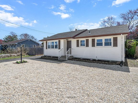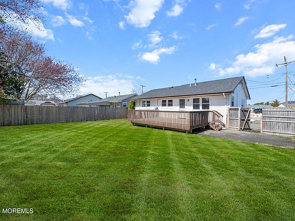 Renovated 3-bed, 1-bath ranch in a waterfront community. Open layout with custom Italian kitchen, quartz countertops, stainless steel appliances, and wide-plank flooring. Designer bath with floating vanity, gold fixtures, and tiled tub/shower with niche. New roof and newer mechanicals. Fenced backyard with large deck; low-maintenance gravel front yard. Bright, airy, and move-in ready. Ideal for first-time buyers, downsizers, or investors. (Grass digitally enhanced.)