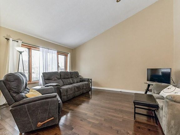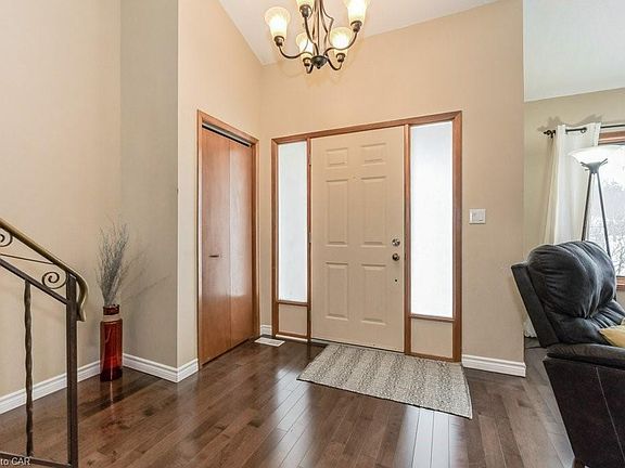 Featuring a pie shaped fenced lot on a quiet court, close to Victoria Cross Public School and just a short walk to Mount Forest Sports Complex, this 2053 square foot, 3-bedroom, 2.5 bath multi-level home awaits its new owners. Upon entering the front foyer, you will be impressed with the cathedral ceiling, hardwood floors and spacious layout. Just 5 steps down and you are welcomed to a bright level which overlooks the magnificent yard. Large windows in the dining room, kitchen, dinette and family room provide warm sunlight even on the dreariest of days. Here the resident chef can prepare culinary delights while keeping tabs on the kids as they finish their homework, watch TV or better yet; toss a ball in the fenced yard. Sliding doors lead to a covered deck; perfect for barbecuing even when the weather is not co-operative. Completing this level are a convenient 2-piece bath and a mudroom with access to the double attached garage with auto opener. The upper level provides 3 spacious bedrooms with generous closets and a 4-piece bath. The master suite boasts hardwood floors, offers a 3-piece ensuite bath and HUGE walk-in closet. You need to check this great home out for yourself!