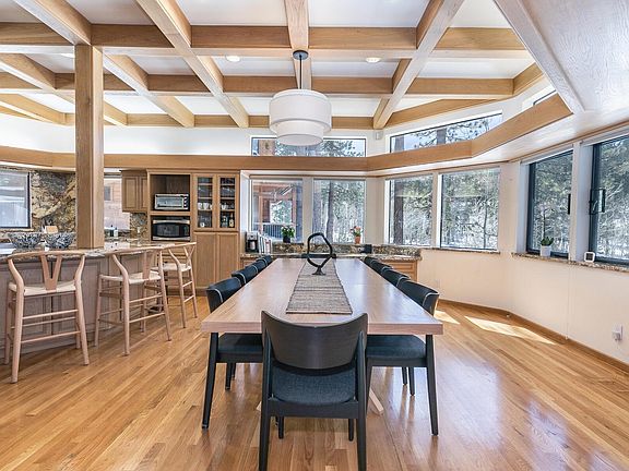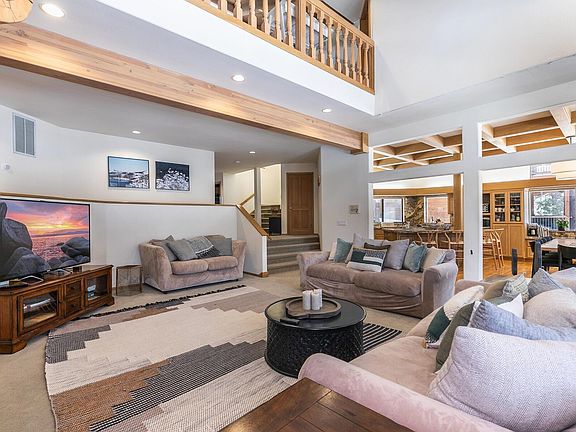 Beautiful, large home on a wonderful lot in Northstar, This spacious property has six bedrooms, five bathrooms, with two primary suites, making it the perfect home for larger families or groups of friends. As you enter the home, you'll be greeted by an open-concept living and dining area with vaulted ceilings, exposed wood beams, and a wall of windows looking out over the golf course. The gourmet kitchen is a chef's dream, featuring high-end stainless steel appliances, granite countertops, ample cabinet space and multiple ovens for entertaining large groups. The upper level of the home features five bedrooms, with the two primary suites located at opposite ends for maximum privacy. In the center of the top floor there's a large game room, perfect for family fun and entertainment. The bunk room has a retractable partition wall to create even more private space. Perched above the 17th fairway, the back deck offers secluded forest views, a hot tub, and abundant afternoon sunshine. Enjoy all the included Northstar amenities: swimming pool, tennis courts, fitness center and a free shuttle to take your right to the slopes. There is an oversized 3 car garage with extra space to store all of your Tahoe toys. This home provides a very unique blend of size and comfort.
