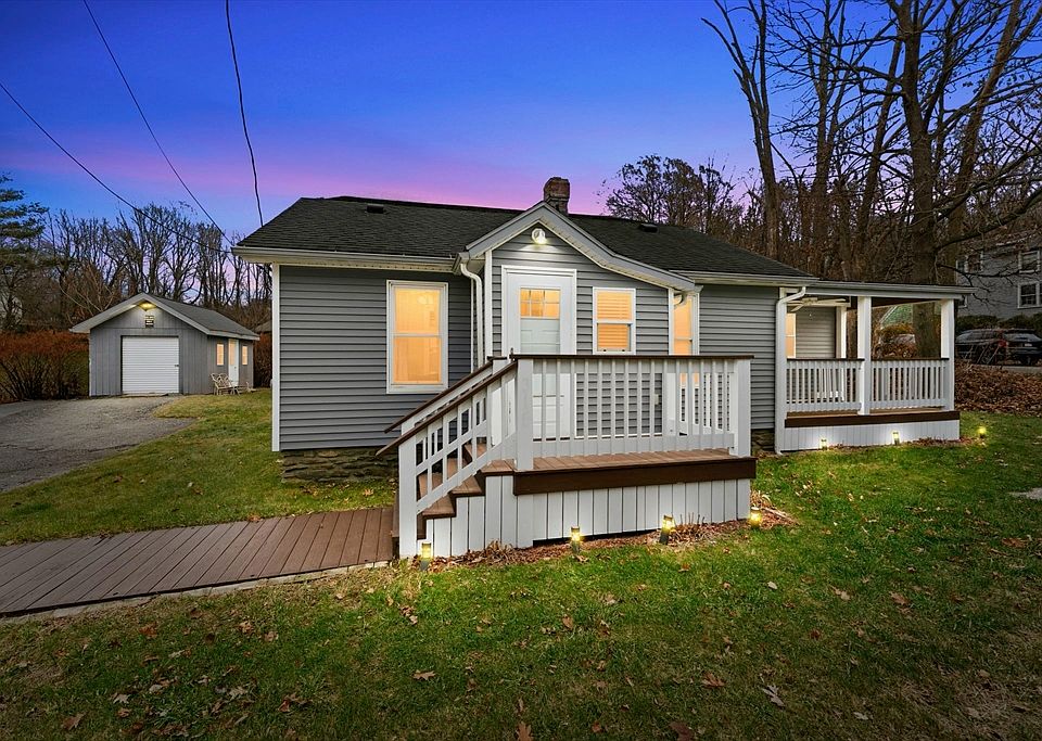 RARE FIND! Updated 2 BED, 1 BATH single-family home featuring a comfortable open-concept layout. The modern kitchen includes stainless steel appliances, slow-close cabinets, and recessed lighting. The kitchen opens directly to the living and dining areas with engineered bamboo flooring. The large main bedroom offers vaulted ceilings, plenty of sunlight, double closet, and is located off the kitchen for easy first-floor living. A spacious full bath includes a jacuzzi tub, stand-up shower, and accent lighting. First-floor laundry in front entryway adds extra convenience. Upstairs, the loft provides the second bedroom along with a versatile bonus space perfect for an office or hangout area. A slider off the dining room leads to a covered porch. Large back deck overlooks a flat backyard ideal for entertaining, grilling, and yard games. Amazing opportunity for first-time buyers or downsizers looking for move-in-ready comfort. Don't miss out on this one!