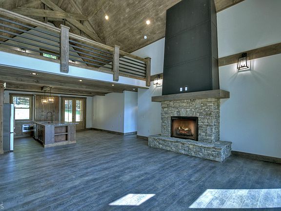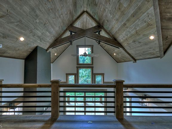 NEAR COMPLETION! Grande style creekfront lodge in upscale, gated neighborhood! This cabin will appeal to the highest of standards in modern rustic nature...open concept great room w soaring cathedral ceilings as well as wood & beam accents, custom stone fireplace, rough circular sawn hardwood flooring, spacious kitchen w breakfast bar, dining area, open loft space, laundry/mud room, Master on main level, full finished terrace level complete with rec/bonus room, 3rd & 4th bedroom and full bath. Outdoor fireplace on oversized deck as well as fire pit area. Noisy creek frontage, useable acreage, pastoral views, great parking space. STRs allowed.