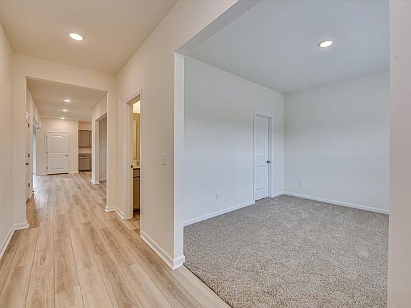 The Bradley II offers 3,040 square feet of comfortable living space, thoughtfully designed with four bedrooms and three bathrooms. The main level features an open floor plan, seamlessly connecting the spacious living room, dining area, and kitchen. A convenient den and powder room complete the main level. The expansive owner's suite is privately situated on the main floor, complete with a walk-in closet and an en-suite bathroom. Upstairs, you'll find three additional generously sized bedrooms that share a full bathroom, providing ample space for family members or guests. Optional upgrades enhance the already impressive features: a covered or screened patio extends your living space outdoors; a gas fireplace adds warmth and ambiance to the living room; and a kitchen island increases workspace and storage. An optional fifth bedroom or office provides extra versatility. The Bradley II effortlessly combines open living with private retreats, creating a home perfect for modern family living.