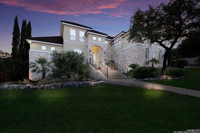 Gorgeous two-story Mediterranean home; 5043 sq ft, 5 beds, 4.5 baths, 3 car side entry garage in gated Sonoma Ranch community. Formal dining room, office, and large living room with elegant fireplace. The chef's kitchen features a Wolf Pro-Style Gas Rangetop with a warmer drawer, double ovens, pot filler, granite counters, and an island with a wine bottle rack. Ceramic tile and rich-toned wood flooring throughout the first level. Spacious master bedroom with sitting area, outside access, and large custom walk-in closet. The master bath boasts a garden tub, dual vanities, and a walk-through shower. Game and media room on the second level. Backyard has everything you'll need! Covered patio with expansive deck, resort-style pool with water feature, and hot tub and sport court. Private neighborhood in close proximity to highly rated Northside ISD schools. Pets Welcome! Owner pays for pool maintenance.