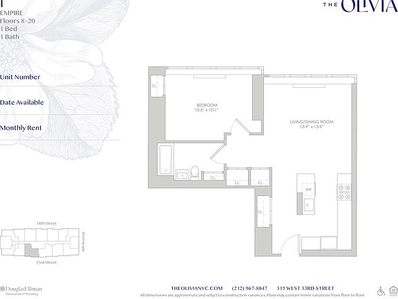 Where skyline views meet thoughtful design, you'll find The Olivia. Rising 36 stories above Manhattan West, our Studio to 2-bedroom rental residences combine modern conveniences, warm service, and inspired interiors. Here, home is your personal vantage point on New York.