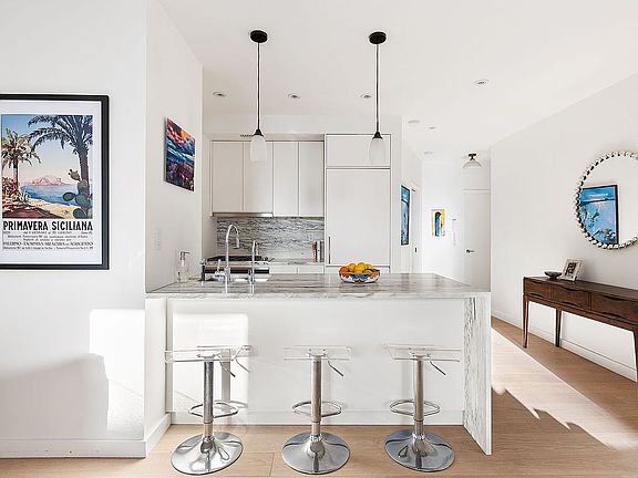 Notably spacious and quiet, apartment 5A is a thoughtfully laid out home that offers a seamless blend of classic charm and modern luxury. With an entire wall of large south facing windows, the main living area is flooded with light. The recently renovated chef's kitchen has been opened to the living area and features top of the line appliances such as a Liebherr refrigerator and Miele oven.