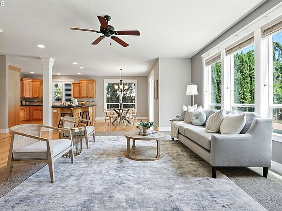 Beautiful 2-story home filled with large windows allowing natural light throughout. Enjoy a flexible great-room floor plan with a bedroom and full bath on the main-perfect for guests. Spacious primary suite with soak tub and large walk-in closet. A spacious bonus room, or guest suite with a Jack & Jill bathroom. Plenty of space for multiple guest rooms or separate living spaces to suit your needs. The home features a 3-car garage, a fully fenced backyard, and a lovely patio with a covered awning — and a peaceful water feature that’s great for relaxing or entertaining. A custom light & bright tool shed makes it easy to find all of your tools. Built by Willamette Valley Homes, this property is just minutes from wine country, top-rated schools, and more. Don’t miss out on this special home!
