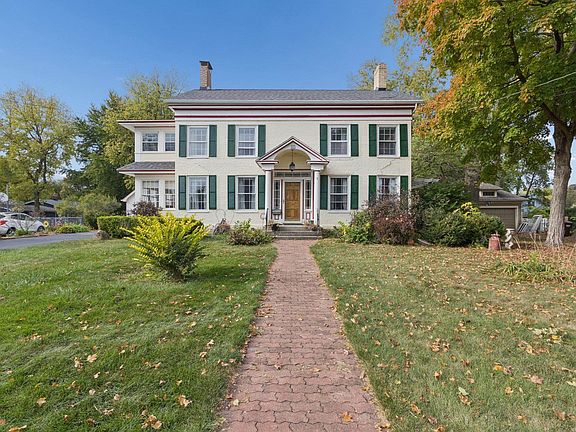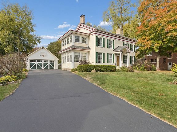 Charming historic home with modern comfort. Beautifully maintained historic 3 bedroom, 2.5 bath home offering twenty five hundred square feet of living space with a detached 2 car garage!. Featuring two living areas and a large wood burning fireplace, this home blends historic charm with modern updates. The remodeled kitchen has natural quartzite countertops, updated cabinetry, and a cozy kitchenette, perfect for everyday living and entertaining. There are hardwood floors throughout. The spacious primary suite includes a walk through closet and a large bathroom with a claw foot soaking tub. There is an upstairs sunroom filled with natural light- ideal for an office, studio or just relaxing. Outside enjoy the large deck. There is large shed all on a large lot. Great location walking distance to parks, schools, Library and downtown Belvidere!
