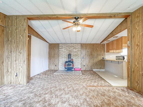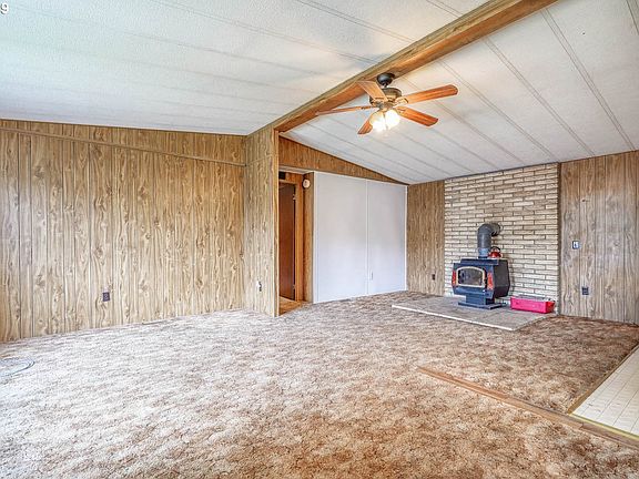 Well kept 3 bedroom 2 bath home with TONS of room for your "toys"! Large gravel parking area and storage building. Home features wood stove, large living area, kitchen and dining room, laundry room and beautiful built ins. Bedrooms are split for privacy.