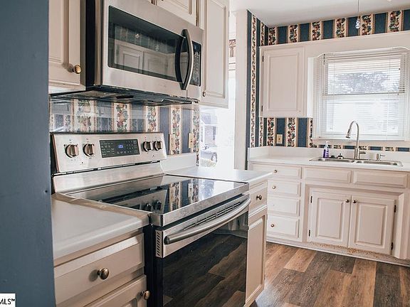 Great one-level 2 bedroom/2 bath brick townhome in School District 6 with rocking chair front porch, stainless appliances, owner's suite with THREE closests and vaulted ceiling, washer/dryer included, tons of storage space, huge great room, updated laminate flooring, large backyard with deck and storage room, and super affordable HOA at $45 per year. Close to I-26 and I-85.