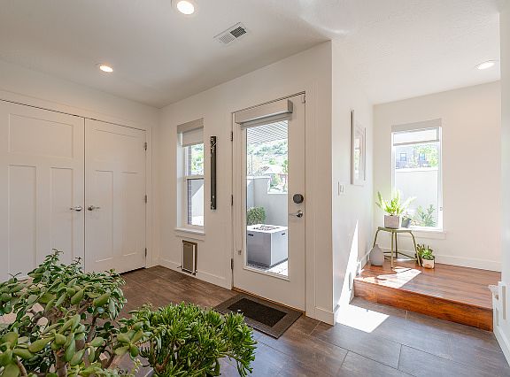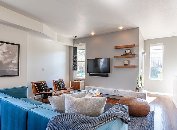 Custom-designed 'green' townhome in downtown Salt Lake City with gorgeous mountain views and easy freeway access. Every update was methodically planned and executed in this remodeled Marmalade District Loft unit. 15 Solarworld panels power this home equipped with smartphone controlled garage, thermostat, and solar usage/maintenance. Walk into the entryway from your large 2 car garage with an oversized coat closet and perfect 'unloading' area. Head upstairs to a bright, open living space ready for hosting and entertaining with a marble built-in shelf that adds an additional touch of luxury. You'll notice the large stunning kitchen with custom open cabinets, VIKING appliances, quartz countertops, updated lighting, and custom window shades throughout the home with automatic-motor shades in both Master Suites. Yes, you read that correctly - two Master Suites sit on the top floor of this beautiful townhome. The larger Master Suite offers an additional flex space - perfect for getting ready, lounging with your morning coffee, or a quiet place to relax with your favorite book. This unit is unlike any in the complex, you won't want to leave after you take your first step inside.