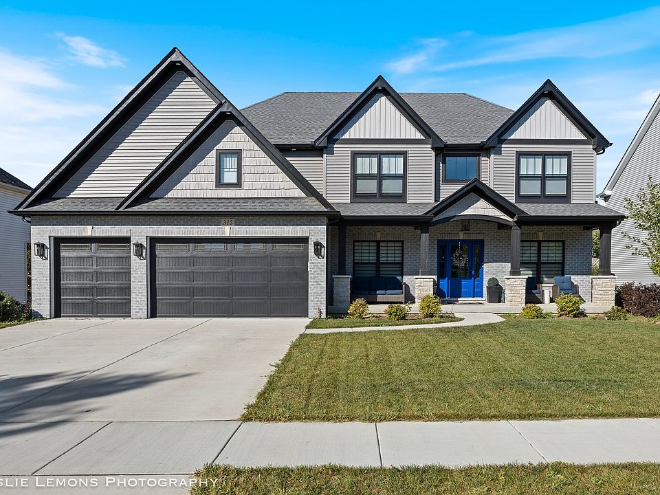 Welcome to 315 White Pines Ln ! Quality McCue Builders most popular floorplan, the Carly Marie. This wonderful home has all the conveniences, 4 bedrooms and 3.5 bathrooms, with an additional upstairs loft and first floor office. Great quality finishes, large open living, with lots of room to spread out and enjoy, Built in 2024 this home shows better than new. Many upgrades throughout including custom woodwork, with coffered ceilings. High-end custom lighting and window treatments will impress. Enjoy the expansive front porch and enter into the soaring 2 story foyer anchored on each side by a cozy living room spacious dining room. The gourmet high-end kitchen features great quality shaker cabinets and durable quartz counters, with a wonderful, custom double waterfall edge island. A very clever smart refrigerator and a separate eat-in kitchen area has ample room for everyday get-togethers. The family-great room features a convenient one touch gas fireplace, with great views to the expansive partially fenced backyard. On the second floor, the primary boasts soaring ceilings and a massive walk in closet and quality high end tile work, dual sinks and a separate dressing area. There are two generously sized bedrooms which share a hall bath along with another guest room featuring its own bath and spacious walk in closet. The huge basement is ready to be finished, lots of natural sunlight from the many big windows and a ready-to-go roughed in space for a finished bathroom, ready to finish for your personal style. Huge drywalled finished 3 car garage, with an attached convenient mudroom. Close to Oswego and Yorkville shopping, many restaurants and now including an all new Costco coming soon ! This house is a must see !