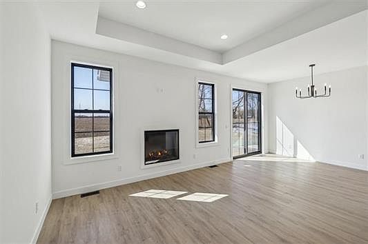 Enjoy move in ready, new construction in the new Sunrise Subdivision in Pardeeville. The Urbandale duplex design features an open main level with 10 ft ceilings, a kitchen island, luxury vinyl flooring throughout, tray ceilings in the great room and primary bedroom, and a surprising amount of in-unit storage in the lower level. A low maintenance fireplace in the main level living area is a cozy addition. The main level has two bedrooms including the primary, each with its own full bath. The primary has a walk-in closet. The lower level features a large living area, two more bedrooms, a full bathroom, and plenty of space for storage or a little workshop just out of sight in the two unfinished storage areas.