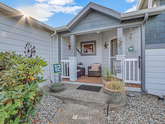 Majestic Views 55+ living centrally located to charming downtown Orting! Model home on meticulously maintained shy 1/4 acre. Picturesque Mt Rainier Views from covered front porch & formal living rm. Desirable floor plan flows effortlessly w/LVP flooring. Builder upgrades incl. vaulted coffered ceilings throughout. Formal dining rm leads to kitchen w/SS appliances, extensive cabinetry & breakfast bar overlook living room w/cozy gas fireplace. French Doors open to Lg Master Suite w/en-suite 4-piece bath & walk-in closet. 2 additional Lg bedrooms. Oversized covered back deck w/low maintenance fully fenced backyard. Community offers clubhouse w/pool, game & exercise room, RV/Boat/Storage & sports court. Sprinkler System, 2car gar.