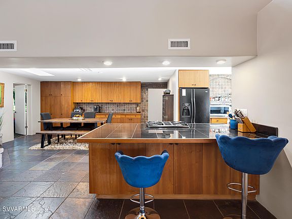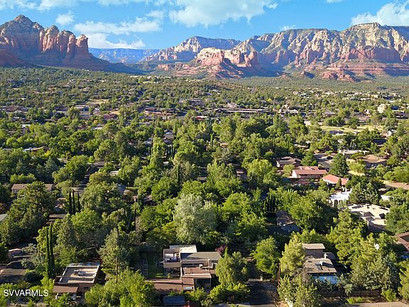 This WEST SEDONA Income property has an average nightly rate of $900/nt and avg stay is 3 nts. Annual Projected Revenue at $236,600. Offers Main House & Sep Guest house UPGRADED with custom cabinetry, granite tile counters, slate stone floors, new paint, warm knotty pine ceilings. Be greeted with oversized sliding glass doors that make the outdoor covered patio feel like an extension of the inside. LIGHT & BRIGHT with a massive kitchen picture window overlooking the private ZEN backyard boasting lush greenery, fruit trees and raised garden beds galore. Main home boasts OPEN FLOOR PLAN w/three bedrooms a large living room and dining room. SEPARATE CASITA has a bright open floor plan, full kitchen, 2 bedrooms and 2 baths. Both homes surround a fenced yard with garden boxes, fruit trees and spiral staircase leads you to the Rooftop deck perfect for stargazing and beautifully captures views of Thunder Mountain