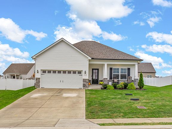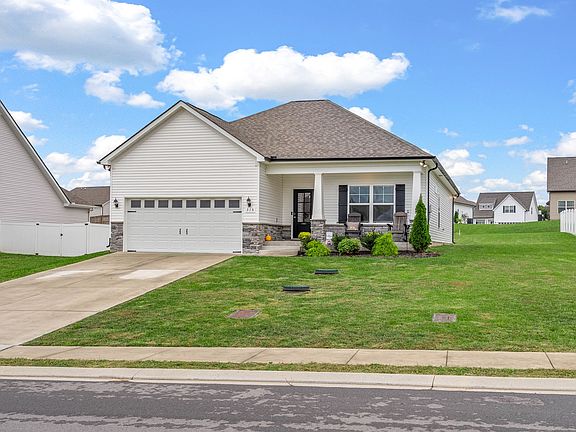 Single-level 3-bed/2-bath in coveted Creeksbend (North Murfreesboro 37129)—built 2023 and feels brand-new. Preferred lender offering $3900 towards buyer cosing costs or rate reduction. Open concept living with a split bedroom layout, modern kitchen with granite, tile backsplash, under-cabinet lighting, pantry, and stainless appliances that remain. King-size primary suite features double vanity, walk-in shower with bench, and a walk-in closet that connects directly to the laundry for everyday convenience. Extra shelving in every closet. Level 0.35-acre lot with an oversized backyard plus covered front porch and rear patio. 2-car garage with pull-down attic storage. Low-fee HOA with sidewalks and a scenic community walking trail along the river with pavilion and grill. Quick access to I-840/commuter routes; zoned Walter Hill Elem, Siegel Middle & Siegel High. Move-in ready, efficient, and easy to love—schedule your showing today.