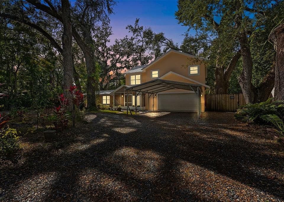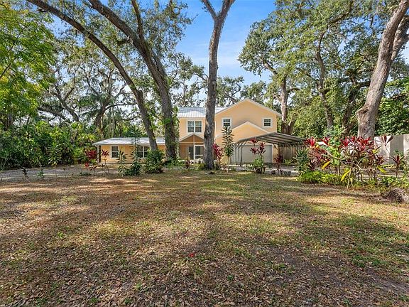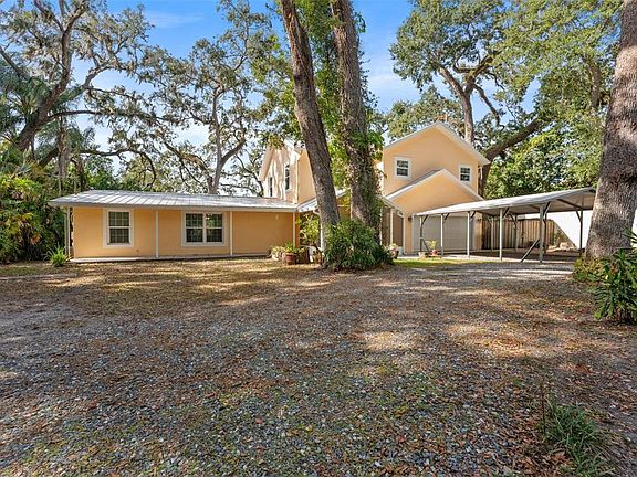 One or more photo(s) has been virtually staged. A rare multigenerational opportunity just minutes from Tampa. 315 Wooten Rd offers a 4-bedroom, 2.5-bath main residence plus a separate 1-bedroom, 1-bath in-law suite with its own private entrance and living space — perfect for extended family, aging parents, or long-term guests who want privacy while staying close. Set on a private, wooded, fully fenced lot with no HOA and no CDD, this property provides both independence and convenience. The main home features a spacious great room with wood flooring, a large bonus room for flexible living, and a loft upstairs ideal for a home office, study space, or play area. The primary suite includes a sitting room, walk-in closet, and a private balcony with peaceful lake views, along with a spa-style bath featuring a standalone tub and separate shower. The in-law suite offers a comfortable bedroom, full bath, and living/bonus area, and has direct access to the main home when needed, while still maintaining privacy. Outdoors, enjoy screened front and back porches, two storage sheds, and shaded yard spaces with room for gardening, gatherings, or simply enjoying the land. A circular driveway, 2-car garage, and 2-car carport provide ample parking for RVs, boats, trailers, work vehicles, or multiple household drivers.