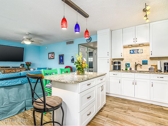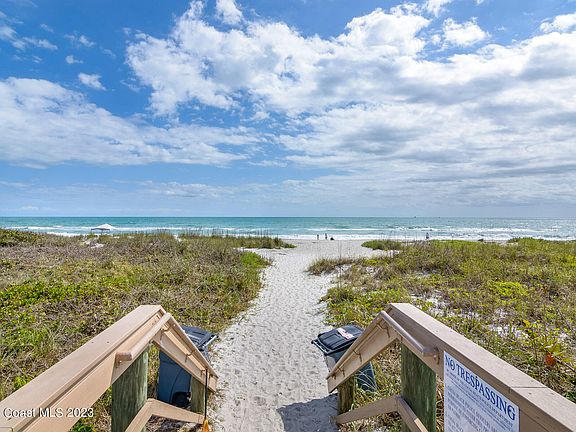 Charming beachside condo is a place to call home, a weekend getaway and or an investment property. This community allows minimum 2 week rentals. This 2 bedroom 1 bathroom condo features an open kitchen with a completed full remodel with new lighting, backsplash, appliances, counters, flooring, fixtures and cabinets both in the kitchen and bath. Washer / Dryer combo, Hurricane Shutters, Plantation Shutters, new windows & sliders. Amenities include ocean access, heated pool, tennis courts, shuffleboard, grilling area and bocce ball. Conveniently located near shopping and restaurants. Short distance to Port Canaveral, Kennedy Space Center, Orlando International Airport and Orlando Attractions.