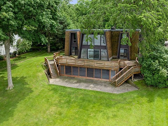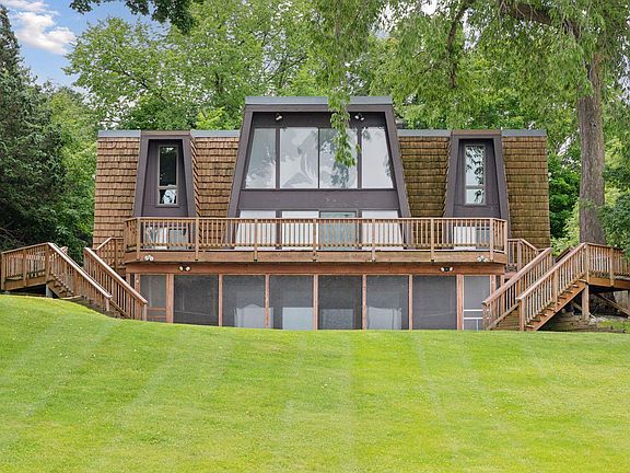 Breathtaking Minnetonka Beach property is primed for a new Lake Minnetonka custom-built home or renovation with panoramic lake views, 83 feet of Crystal Bay lakeshore and a 0.41 acre site. This sought after community includes neighborhood parks, swimming beach, nearby Lafayette Club, plus the Dakota Rail Trail is just steps away for walking, biking and more! Tranquil lake views can be seen from practically every room in the home. The light-filled main level is highlighted by an impressive 2-story wall of glass and a 2-sided, wood-burning fireplace in the living room and the adjoining dining and kitchen with doors to the deck for easy outdoor dining. Main level primary suite with en-suite ¾ bath and deck access. Upper-level features light-filled loft area with elevated lake views and wood-burning fireplace, plus 2 bedrooms with lake views, and a full bath. The walk-out lower level is open and versatile-- family room, game tables, exercise area, 2nd kitchen area, ¾ bath. Great outdoor spaces with a screened porch, expansive lower patio and upper deck, and sprawling yard, all with stunning lake views.