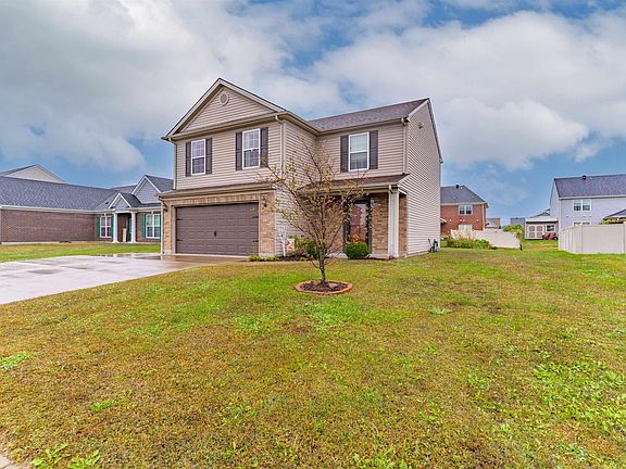 Welcome to this charming 2-story home in the desirable Brookstone subdivision of Newburgh, IN! Built in 2015, this well-maintained residence features a welcoming covered front porch and an open-concept layout perfect for modern living. The spacious kitchen flows seamlessly into the great room and boasts newer stainless appliances, a pantry, and a convenient half bath on the main level. You'll love the large under-staircase storage for added functionality. Upstairs, the primary suite offers a private ensuite bath and an expansive walk-in closet. Two additional bedrooms share a full bath, and the laundry room is thoughtfully located on the upper level for ease. Recent updates per owner include fresh paint, updated light fixtures, a 2-year-old HVAC system, brand new disposal, added screen door, and an expanded concrete driveway. The roof is approximately 10 years old. Enjoy outdoor living in the level backyard with a concrete patio—ideal for relaxing or entertaining. Don’t miss this move-in-ready gem in a fantastic location near Friedman Park and Warrick Trails!