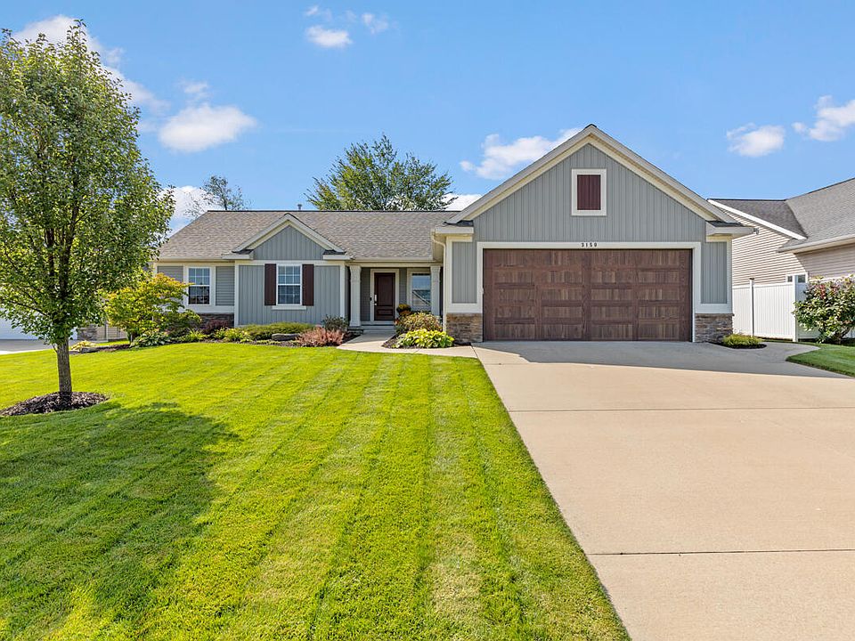 Beautiful ranch 4 bedrm/3 bath home in Grandville schools. Featured in the Parade of Homes in 2016, this home's main floor features 3 bedrms, 2 full baths, main floor laundry, mudroom area w/ closet, open concept living room with gas fireplace feature wall, dining area, kitchen with ton of natural light, & upgraded ceiling beam detail. The kitchen has quartz countertops, a walk-in pantry, & an oversized island with seating & lots of storage. The main floor primary bedroom has an en suite with floor to ceiling tiled shower. Bath bathrms on main have quartz countertops. Another full bathrm and extra large bedrm is on the lower level along with a stunning hospitality bar, additional living room, & two unfinished storage areas. Walk through the neighborhood to easily connect to Kent Trails. Close proximity to shopping and restaurants.