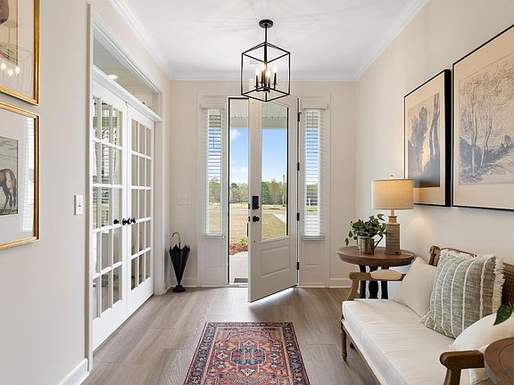 The Yates II is our new grandest home plan offering over 4100 heated sq ft of space! Wooded backyard on .20 acre can be fenced in. Families welcome: 5 bedrooms, 4 full bathrooms and a 1/2 bath, sunroom and covered porch & patio. Balcony and front porch. This beautiful home boasts an office, a formal dining room with coffered ceiling, family room with fireplace and decorative ceiling. Your gourmet kitchen features a walk-in pantry, butler's pantry, soft close cabinetry, farmhouse sink and quartz. Upstairs you'll find a spacious primary suite with two walk-in closets and a dressing area, an 8-foot tiled shower with dual shower heads, and separate vanities. Also upstairs, a large loft and a laundry room with dual cabinet/countertop options, a sink and linen closet. Our 1-2-10 year warranty will give you peace of mind. Superior energy efficient construction includes 15 SEER HVAC and R-38 ceiling insulation. Come check out our outstanding quality, fit and finish! Photos shown are of a similar home and furnished model of a Yates II in another community, options and layout will vary.