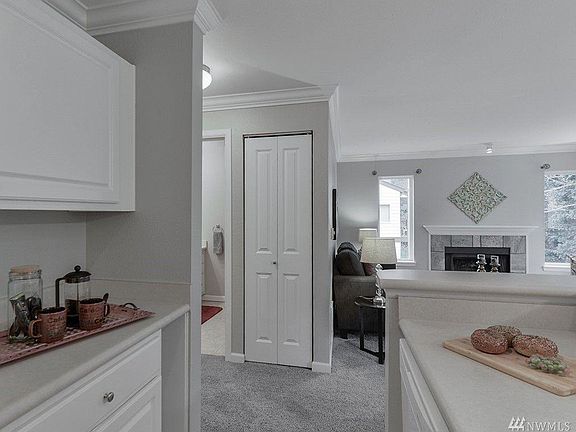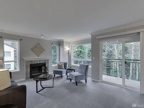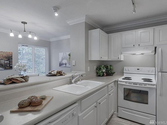 Beautiful, clean 990 sq ft condominium in quiet, gated community has two bedrooms and one large full bathroom. End unit overlooking greenbelt provides extra privacy. 2nd floor unit, entrance has no stairs. Designer color scheme throughout, stone tiled entry, living room fireplace and dining room, and kitchen breakfast counter. Formerly renovated. Living room, dining room, and kitchen feature crown molding throughout. Nearby clubhouse only steps away with outdoor swimming pool, hot tub, fitness center and tennis court. Close to beach and easy access to bus lines, I-5, Hwy 99 and Hwy 18. Minutes away from Dash Point State Park. Tours available starting Tuesday, March 4, 2025, evenings on weekdays, any time on weekends. Sorry, absolutely no pets. Non-smoking unit. Minimum 670 credit score required. Water, sewer and garbage included. First and last month's rent of $1,800 each are required upfront. A $300 cleaning fee will be withheld from the last month's rent. Single vehicle parking space included. Applications accepted only through Zillow.