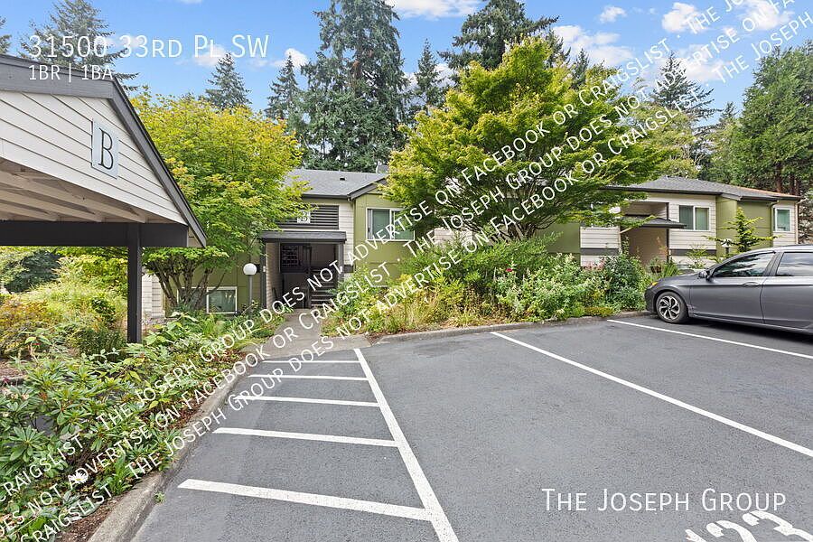 Discover this roomy one-bedroom, one-bath ground floor unit nestled in Federal Way. Step inside to find a spacious living room with a cozy dining area, and a kitchen equipped with stainless steel appliances and a breakfast bar. The primary bedroom offers ample space and includes a walk-in closet. Enjoy the convenience of a dedicated laundry closet with an in-unit washer and dryer. Community amenities abound, including a clubhouse, fitness center, tennis court, indoor hot tub, and outdoor pool. Close proximity to shopping and transit adds to the convenience. Step outside through the sliding glass door to the patio, where you can enjoy a tree-lined view! Home includes one reserved parking space. Flat monthly rate of $100 covers W/S/G. Experience comfort, convenience, and relaxation in this inviting residence