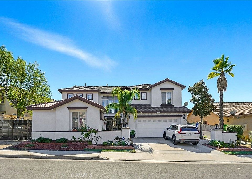 Beautiful two-story former model home featuring 2,880 sq. ft. of well-designed living space with 5 bedrooms and 4 full baths. The inviting floor plan includes a spacious family room with fireplace, formal entry, bright living room, and an open kitchen with tile counters—perfect for entertaining. The home offers both comfort and functionality, with two bedrooms and two full baths conveniently located on the main floor, including a main-floor primary suite. Upstairs, the large master suite features a luxurious bath with double sinks, separate tub and shower, walk-in shower, and walk-in closet. Bathrooms include low-flow toilets, double vanities, and modern fixtures throughout. Additional highlights include a laundry room, ample storage, and multi-level bedroom layout ideal for families or guests. Don’t miss this move-in ready home that combines space, comfort, and style in one!
