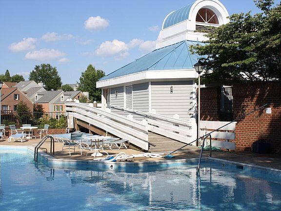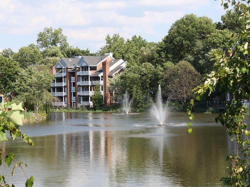 Top Floor Spacious Sunny one BR with Den/Office 950 SQ FT Great Room (LR/DR combined) with soaring 2-floor ceilings and wood burning fireplace. Bathroom with ceramic floor and two vanities. Dressing area and walk-in closet. Palladian window in BR Washer and Dryer in unit Private covered balcony with dual access from LR and Kitchen Water and garbage included Enjoy pool, clubhouse and jog paths and proximity to everything. Available Now, one month rent deposit. Happy to show at your convenience. Please call or text to schedule a showing. Close to Rt 50, Rt 66, Mosaic, Merrifield, Tysons, stores, shops One year lease.