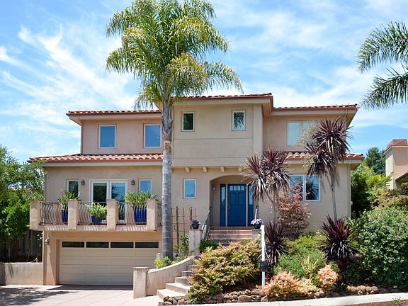 NEW PRICE! Stunning newer Mediterranean style custom home in great mid town location close to freeway access, beaches & shopping. Inviting entry w/high ceilings, satillo tile & beautiful hardwood floors throughout. Downstairs offers a cozy living room w/wood burning fireplace, bedroom w/full bath & kitchen opens into family room. Kitchen has high ceilings, skylights, pendant lighting over breakfast bar, granite slab counters, stone backsplash, many cabinets w/slide out drawers, SS appliances w/Viking gas range & large walk in pantry. Formal dining area has custom Murano glass light fixture w/balcony & access to the backyard. Upstairs has more skylights, laundry room w/sink, 3 spacious BRs one used as an office w/built in desk & bookcases & master bedroom suite w/2 closets, bath w/marble, soaking tub & stall shower. Other features include tinted windows, central vacuum system, low maintenance yard w/artificial lawn & drip irrigation, attached garage w/workshop/hobby area & extra storage.