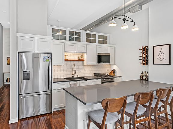 Completely Renovated One Bedroom / One Bathroom Loft in highly-desired Lakeview. Soaring 13' ceilings grace this Open Concept Floor Plan that boasts New Acacia Hardwood Floors, New LED Lighting, Fresh, Neutral Paint, Custom Window Treatments, Huge Picture Windows and an Urban-Chic Exposed Brick Wall. Relax in the Living Room with its New LED Fireplace and enjoy an open view to the Modern Kitchen that features Custom Cabinets, Oversized Breakfast Bar, Quartz Countertops, High-End Stainless-Steel Appliances, and an Extra Large Kitchen Sink. The Spacious Bedroom treats you to a Generously Sized Cedar Closet and the Renovated Bathroom is sure to please with its New Vanity with Marble Top, High-End Plumbing Fixtures and Lighting, and 72" Long Soaking Tub with New Porcelain Tile Surround. There is additional Closet and Storage Space, a Convenient In-Unit Washer and Dryer and also included is a Heated Garage Parking Space #C4 and Storage Space #217. This Summer take in the Panoramic Views of the Chicago Skyline from the Common Area Roof Deck. This Prime Chicago Location is steps to: Whole Foods, Gym, Public Transportation, Shopping, Restaurants, Nightlife and More.