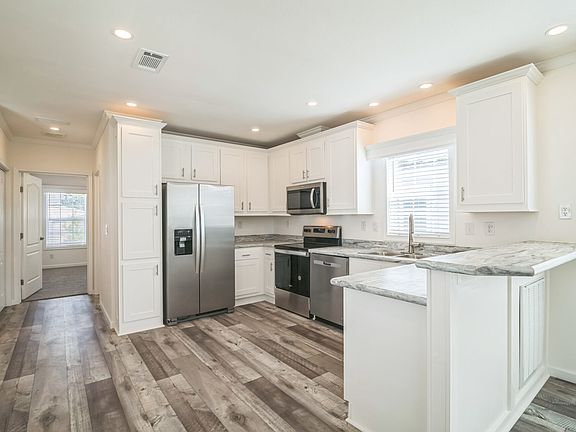 Brand New Skyline Home - Model #5011 ABe the first to own this beautifully designed 2 bedroom, 2 bathroom home featuring a half covered porch-perfect for relaxing outdoors. Price Includes: Complete set-up, A/C & heat, carport, skirting, driveway, storage shed, and essential appliances including refrigerator, stove, microwave, and dishwasher. Features: Drywall throughout, kitchen with stainless steel appliances, 60"" enclosed shower in the master bath, steps and railings, and pre-plumbed washer/dryer hook-ups. Backed by a 12-month limited warranty for peace of mind. Photos are builder renderings and may vary depending on the selected floor plan.