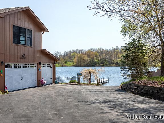 3 beds and 2 baths ready for you in this Podunk Lake house with around 100 ft of frontage!! This home has a large main floor, primary bedroom with views of the lake, great kitchen, and huge bonus room above the 3 car garage! It also has a detached 2 car garage, pole barn, and shed for anything you could possibly need to store. The guest house in the back of the property is an amazing opportunity to have people stay at the lake with you, or possible additional income. NO HOA, and is on a public, county maintained road. Great fishing and year round views. Third bedroom is an open air loft that could easily be closed off.