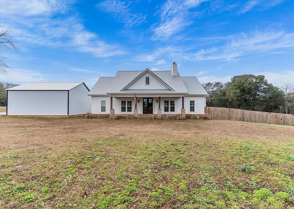 Experience the perfect blend of modern luxury and rural serenity in this stunning 3-bedroom, 3.5-bathroom home built in 2022. Situated on a sprawling 2-acre lot, this property offers an ideal private retreat with an easy commute to Fort Rucker and quick access to Boll Weevil Circle shopping. The 1,901-square-foot interior is meticulously maintained, featuring a cozy fireplace, stylish flooring, and premium custom closets designed for maximum organization. The exterior is a homeowner's dream, boasting a massive 30x30 enclosed metal building perfect for a workshop added in 2024, along with a brand-new fence installed in 2025 for added security. With a durable metal roof, energy-efficient construction, and a location within top-rated school zones, this move-in-ready estate represents a rare opportunity for contemporary living in Enterprise.