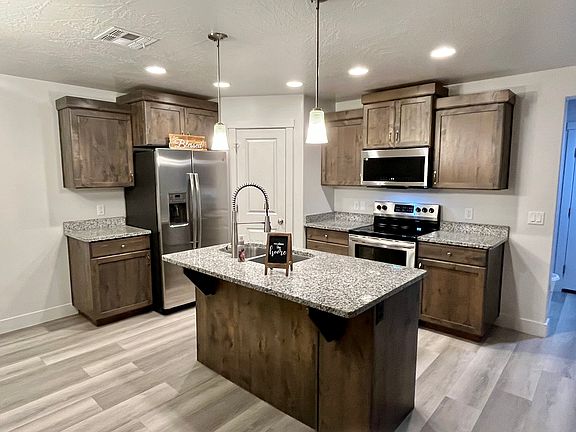 The kitchen has beautiful stainless steel appliances including the refrigerator, microwave, and dishwasher as well as granite countertops and a large pantry! Home has an open concept kitchen/living room downstairs.