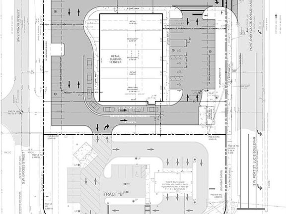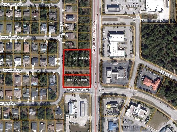 230' front going south Port Ѕt Ꮮuсie Blvd w 2 рoѕsible right turn in right turn out сurb cutѕ plus Darwin Blvd. intersection access through dedicated ROW adjoining Take 5 Oil Change to be built. Perfect for Bank, Fast Food w drive thru, strip center to 10,400 sq ft or 9,000+- sq. ft. w end cap drive thru, being sold subject to buyer's approvals, final site plan and recorded plat reasonable time frames. Survey available all utilities to site.