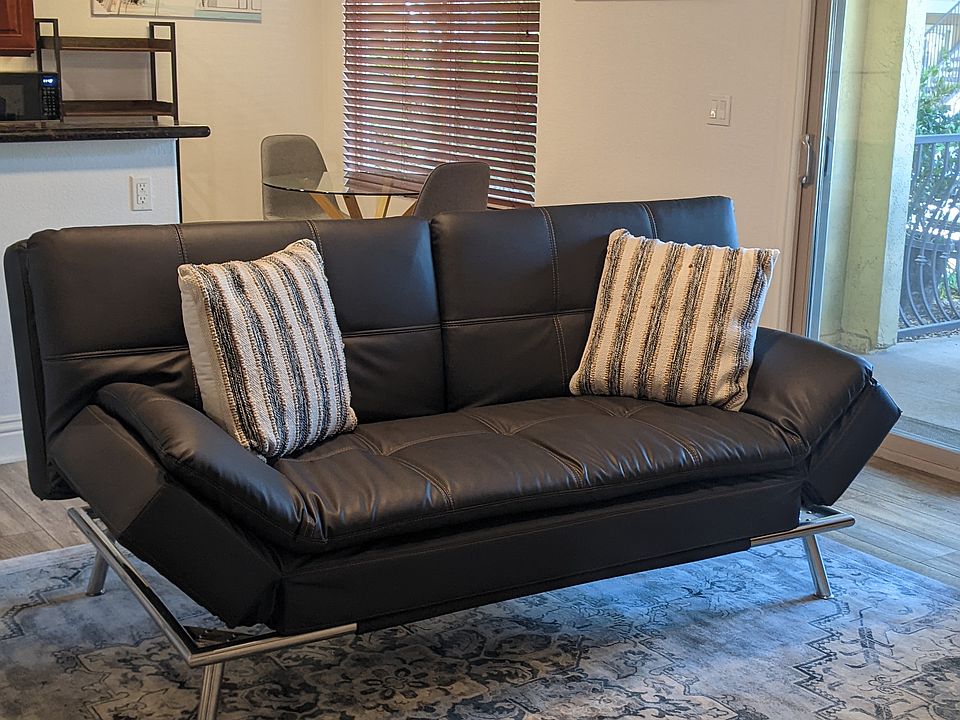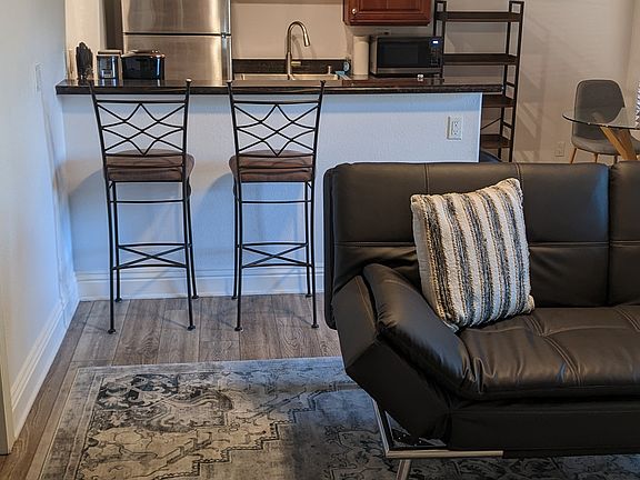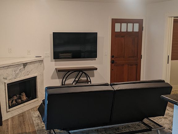 This fully furnished gorgeous light and bright one bedroom condo is available for short or long term lease. It has recently been updated with a new shower enclosure and a new granite bathroom counter top along with new flooring and a granite fireplace surround. this condo comes with a washer and dryer in the unit! The kitchen has granite counter tops and stainless steel appliances, including a Bosch dishwasher and a newer refrigerator. All lighting is LED with dimmers. The patio is perfect for your morning coffee. Amenities include a pool and jacuzzi with a designated parking spot close to your front door. This property is sited just minutes from La Jolla Shores and UCSD as well as within walking distance to Whole Foods, Trader Joe's and many shops and restaurants, with easy access to the 5 Frwy! Water/sewer and trash included. No smoking or pets please.
