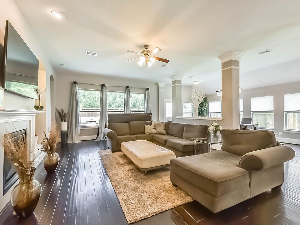 Welcome to this exquisite single-story, 4 bedroom/3 full bath residence in The Falls of Imperial Oaks. Floorplan Victor by David Weekly boasts separation between guest room, kids retreat/bedrooms and primary bedroom. Incredible privacy throughout while still all on the same floor. Main living spaces create an amazing open living feel. Backyard oasis with pool, outdoor kitchen and tanning platform. Multiple rooms could be used as flex space/bedroom/office space Expansive, open kitchen with large island and granite countertops. The three-car garage, with epoxy flooring, has two oversized bays being 26ft deep. This garage has ample space for cars and toys! Zoned to highly sought after Birnham Woods elementary, York Junior High and Grand Oaks Hgh School. Great neighborhood and neighbors. Walking distance to elementary school.