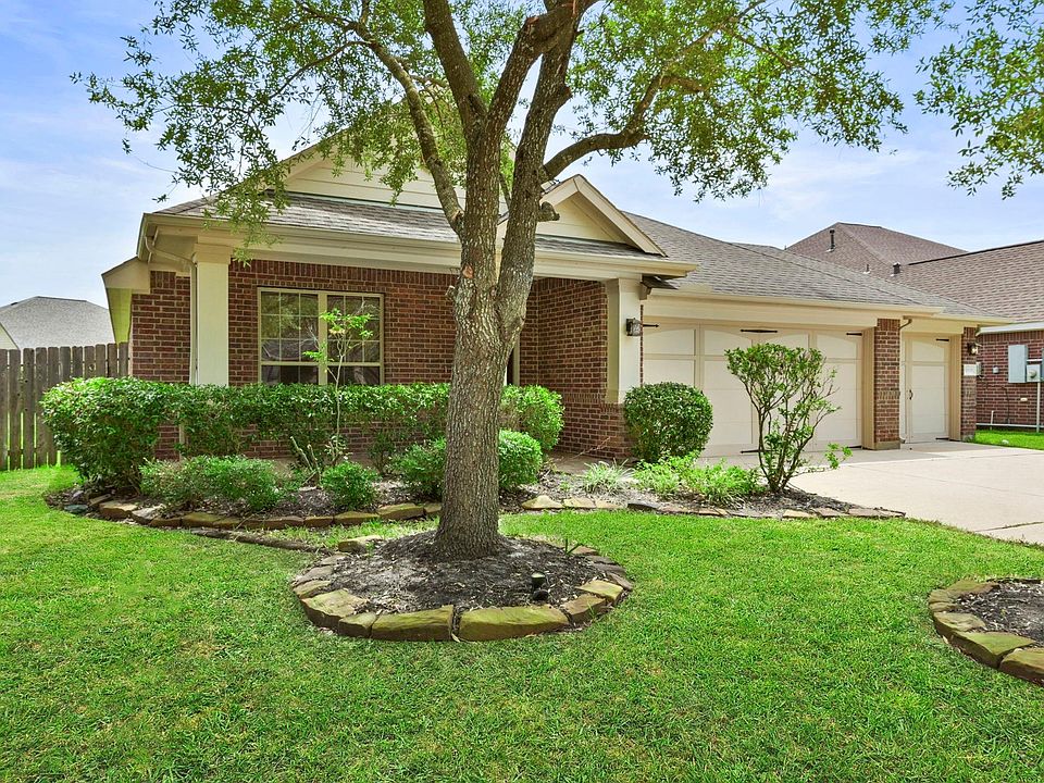 Gorgeous One Story Has it All! Leaded glass front door, crown molding, angled ceilings, hardwood tile floors, study, formal dining, gameroom, ceiling fans, arched entries, recessed lighting, island serving bar, granite countertops, tile backsplash, single vanity with double sinks, garden tub, separate shower, walk-in closets with built-ins, pre-wired security system and covered back patio. Enjoy the freshly painted interior throughout the home.