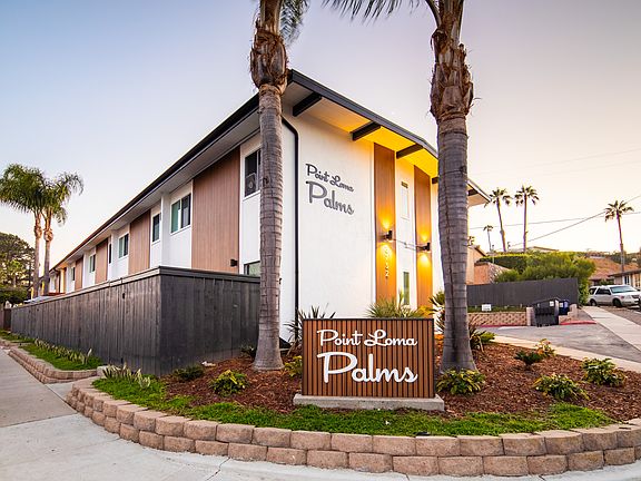 Welcome to Point Loma Palms, a newly renovated apartment community located in the San Diego's Point Loma neighborhood. The community features new double pane windows, modern exterior enhancements and onsite parking. The apartment homes feature hard surface floors, tile backsplashes, stainless-steel appliances, in-home washer and dryer, and open floor plans.