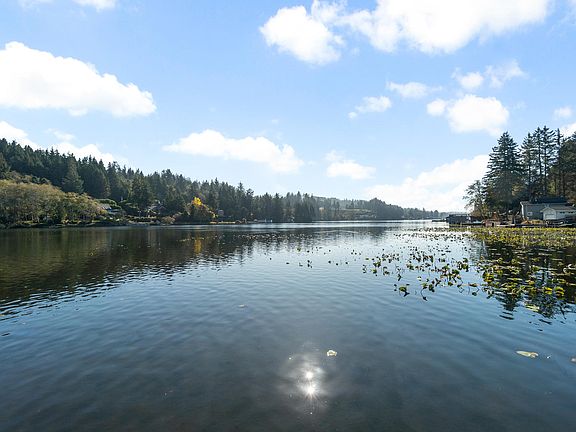On a magical lake on the Central Oregon Coast is an enchanting lakefront home for those who appreciate extraordinary lake living with entertaining & private spaces, plus loft for add'l sleeping. Built to take advantage of the stunning setting, lake & mountain views, and exceptional landscape with substantial prime lake frontage. Beautifully finished throughout. Start your day with coffee on the deck with Incredible sunrises and end it on the yard gazing over the serene lake and mountains. Large private dock to park your kayak or boat. This home also has a level backyard which is uncommon around the lake and allows for so many activities or entertaining...Huge decks for relaxing and enjoying. Minutes to town and ocean beaches. See 19-2767 - adjacent lot available (play house excluded)