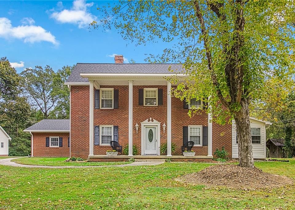 Stately Colonial Home located south of Graham. Very convenient to I85/40, Chapel Hill, Greensboro & Southern High School. Lovely covered front porch, 25.5x8. This property includes 2 parcels #142506 & #142507 for a total of 9.64 Acres. This home sits 275' off of Hwy 87 and has tons of potential. The primary bedroom is on the main level with 3 BR on the second level. Ton of space with 2 car attached garage 23.9x29.9, 3 car detached garage 40x26 with automobile lift and a metal carport. Please see features sheet. This is a very beautiful property with lots of potential use, Airbnb, Bed and Breakfast!